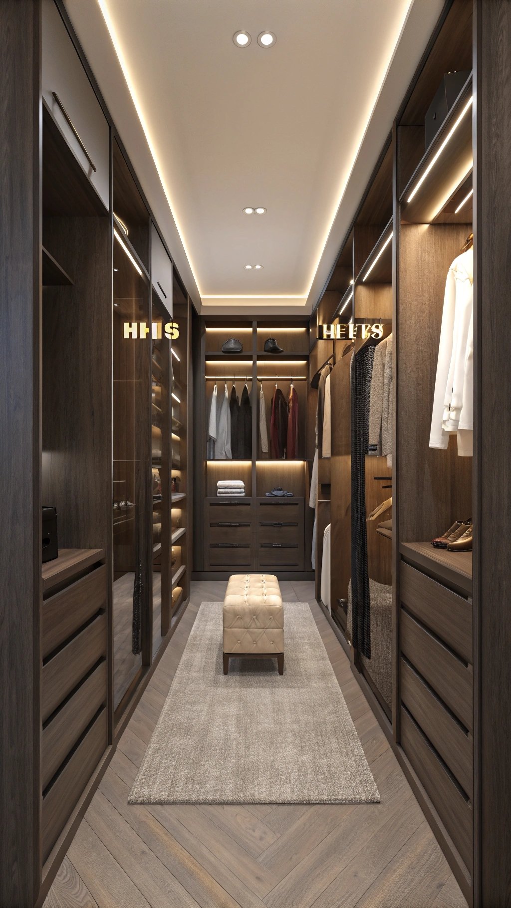 The walking closet has become a must-have in modern home design, merging functionality with high-end style.