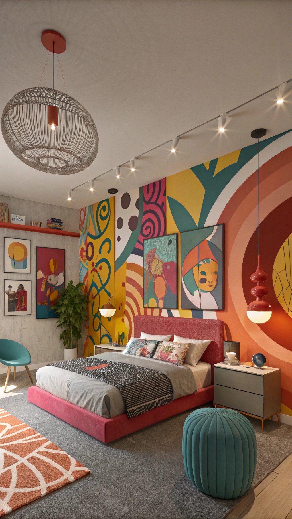 Art-inspired spaces blend color, contrast, and creativity. From statement wall art to sculptural lighting, every piece is expressive. It’s ideal for those who see their room as an evolving canvas.