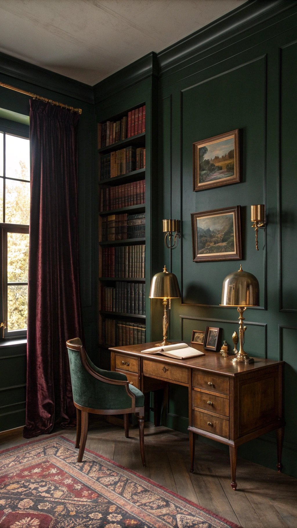 It’s not just décor — it’s an attitude. The mix of scholarly details and gothic charm creates a sense of mystery. Velvet, leather, and brass combine for a luxurious old-world feel.