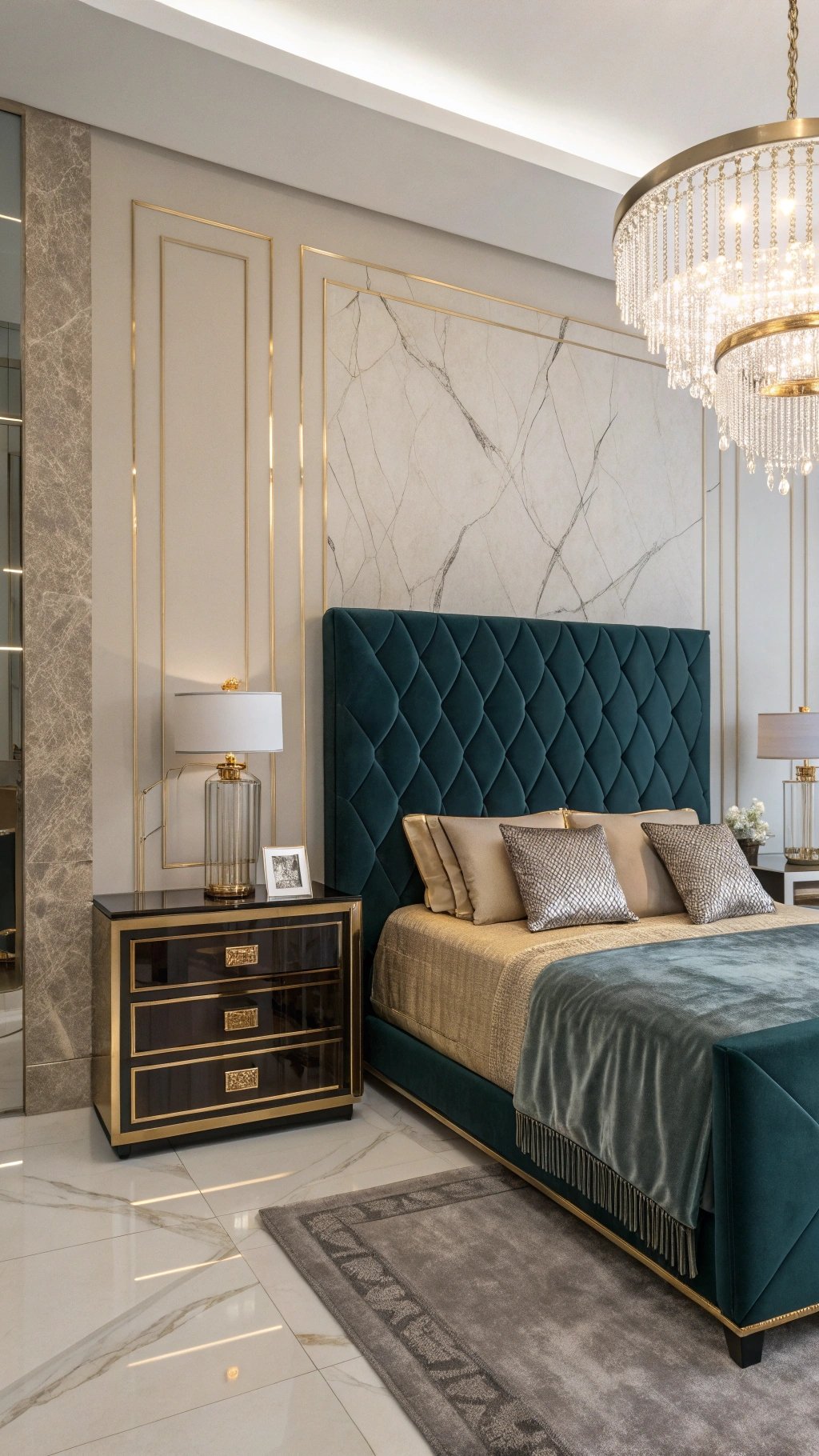 The key lies in texture and contrast. Polished surfaces meet cozy fabrics, creating a balanced look that’s both glamorous and inviting. It’s bold sophistication, minus the stuffiness.