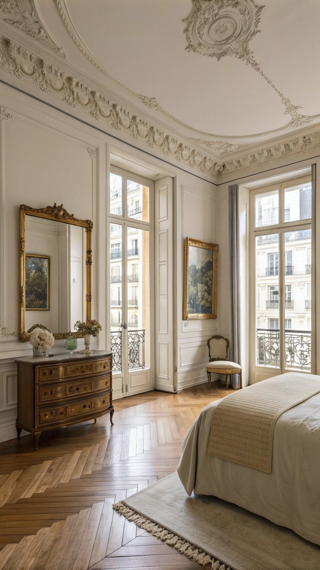Parisian chic is elegant without effort. High ceilings, light walls, and vintage gold accents bring sophistication. A mix of old and new pieces keeps it timeless and fresh.
