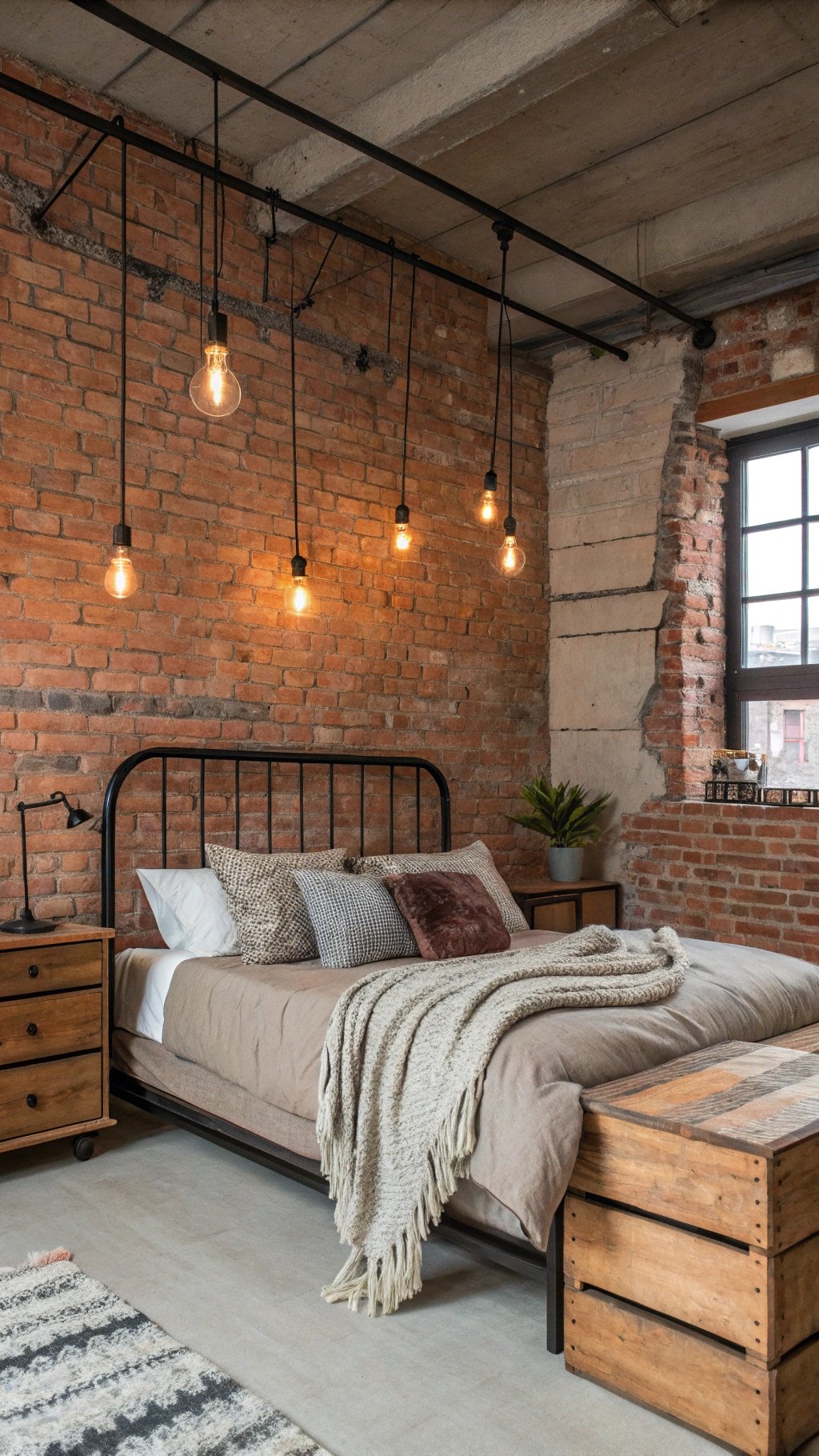 Rustic industrial design merges rawness with warmth. Exposed brick walls, metal bed frames, and reclaimed wood create a moody yet welcoming space. It’s ideal for those who love texture and character.