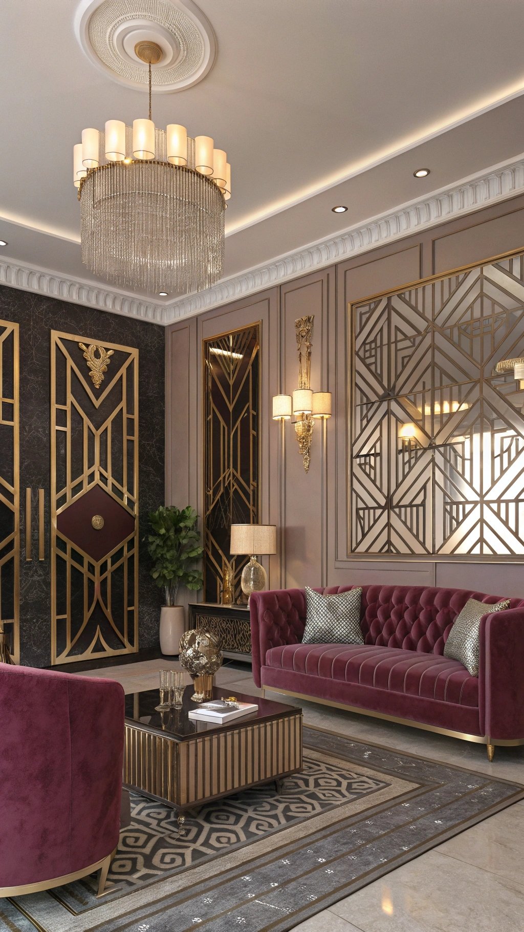 Art Deco design brings glamour and geometry together. Bold colors, metallic details, and sleek symmetry create a sense of luxury and drama.