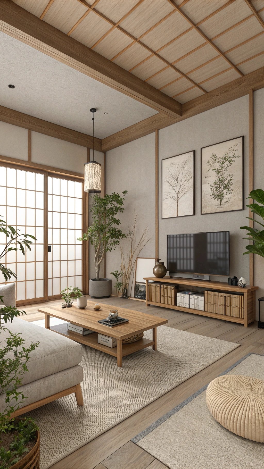 Japandi design combines Japanese simplicity with Scandinavian warmth. Clean lines, muted tones, and organic materials define this look.