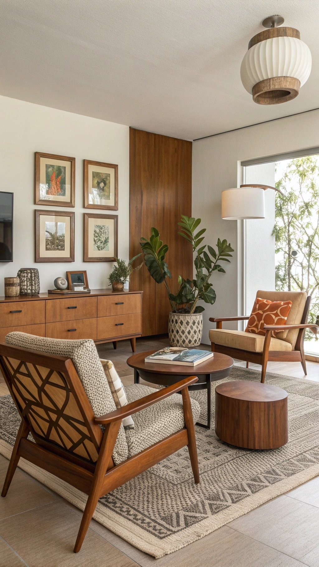 Defined by geometric shapes and organic lines, mid-century modern style brings timeless design into today’s homes. Wooden furniture, statement chairs, and vintage hues create warmth and charm.