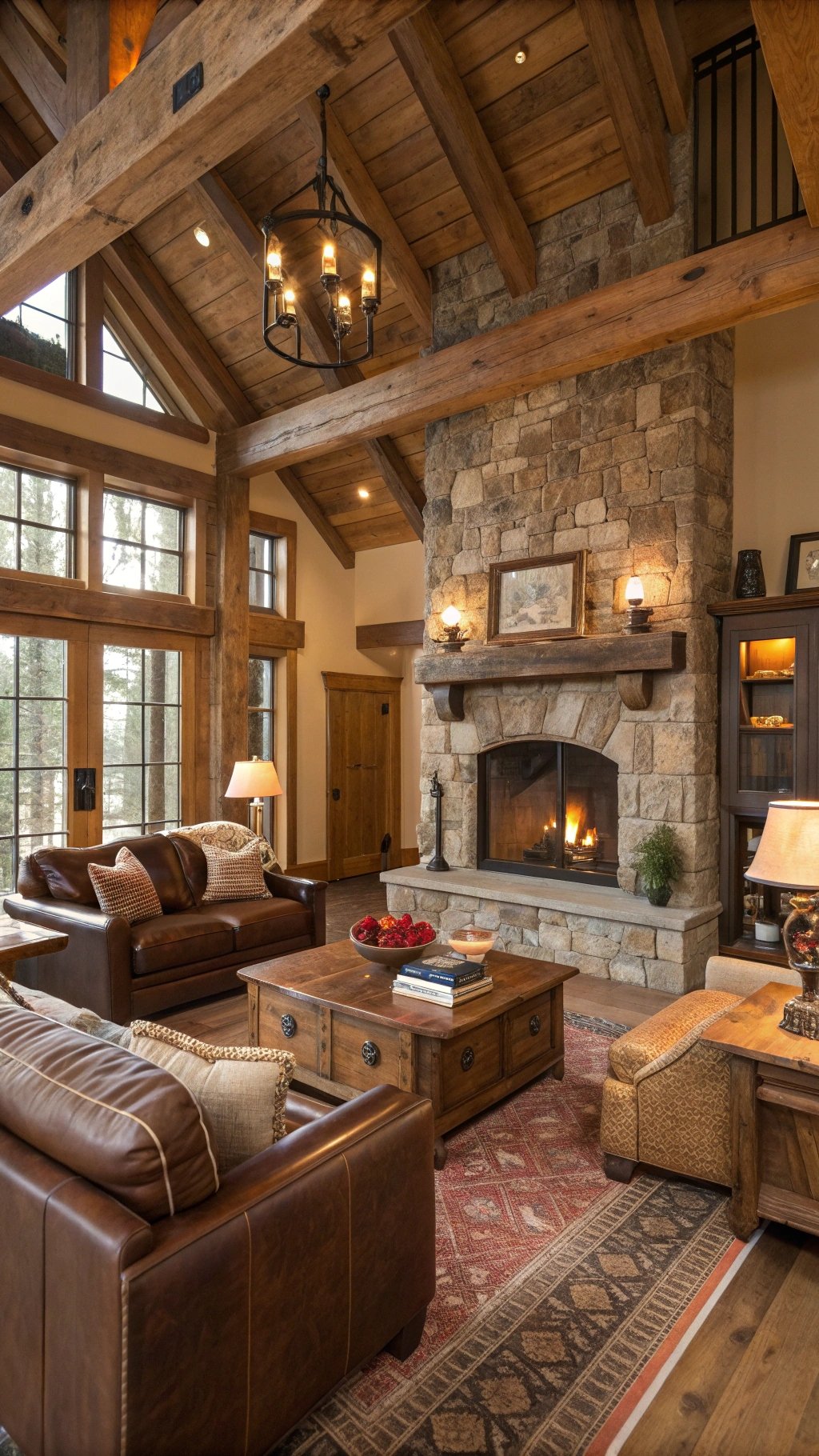 Rustic design celebrates nature’s raw beauty. Reclaimed wood, stone walls, and soft lighting create a cozy, grounded atmosphere.