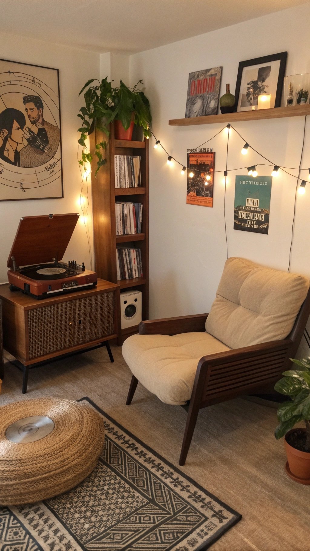 - Set a low chair, small side table, and floor lamp—cozy and intentional.