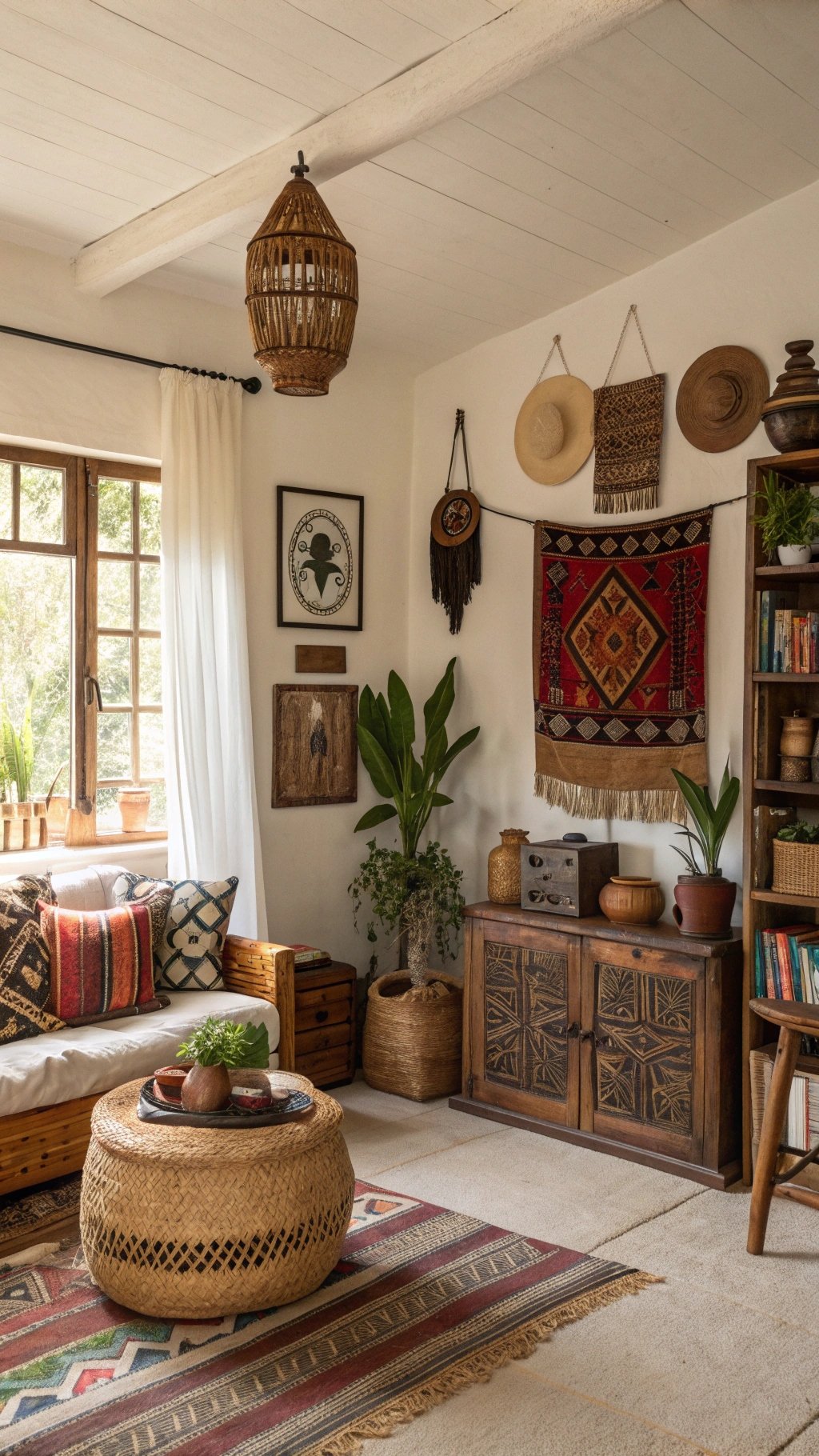 Woven baskets bring warmth and functionality. They’re the MVPs of Afrohemian styling—pretty and practical.