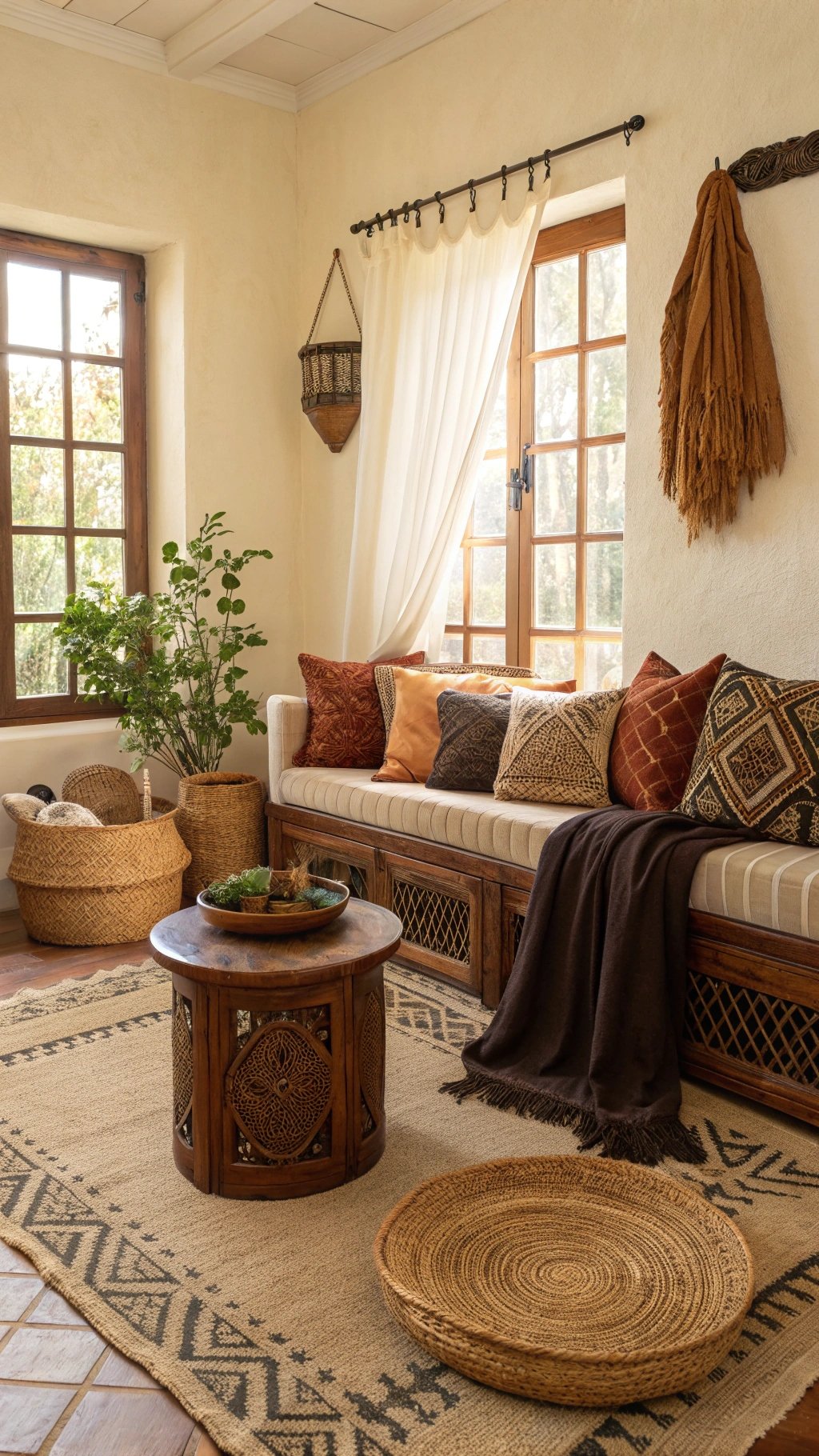Afrohemian style is texture heaven. You want layers that feel lived-in, tactile, and cozy without looking cluttered.