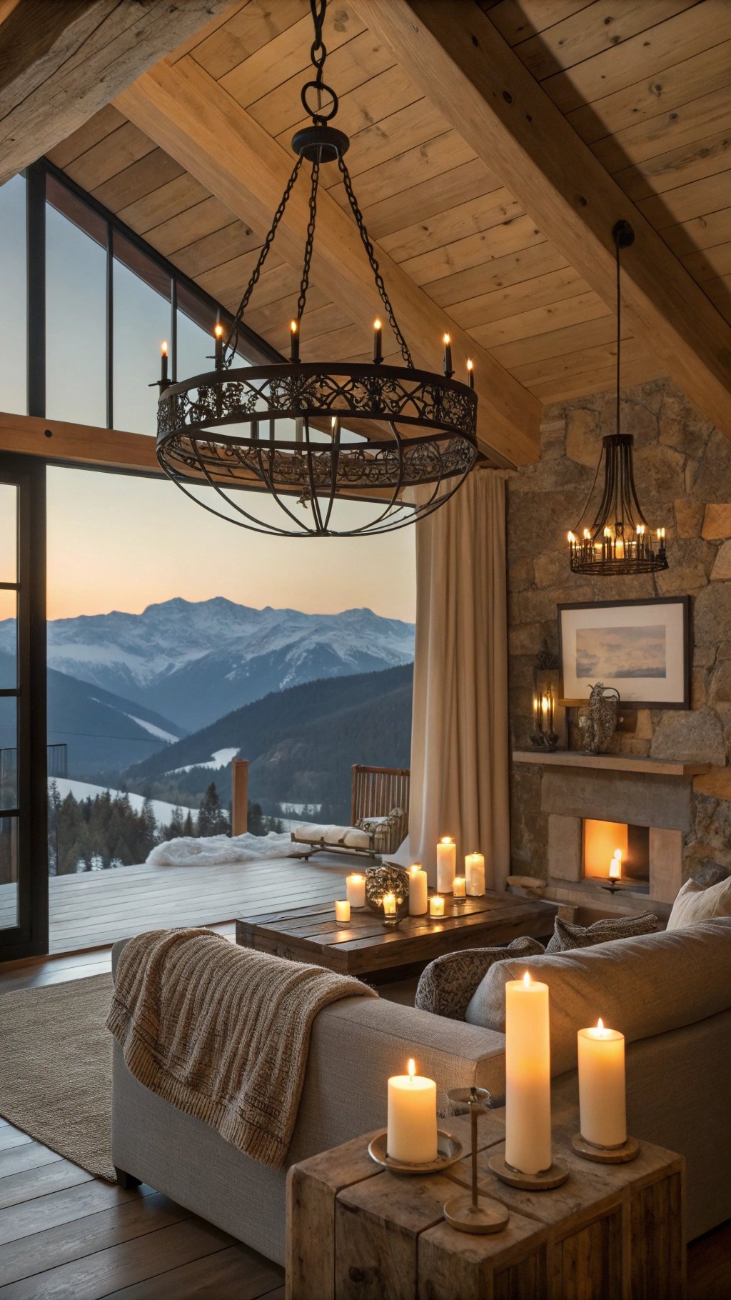 • Scent: pine, cedar, or smoky vetiver candles to complete the alpine mood.