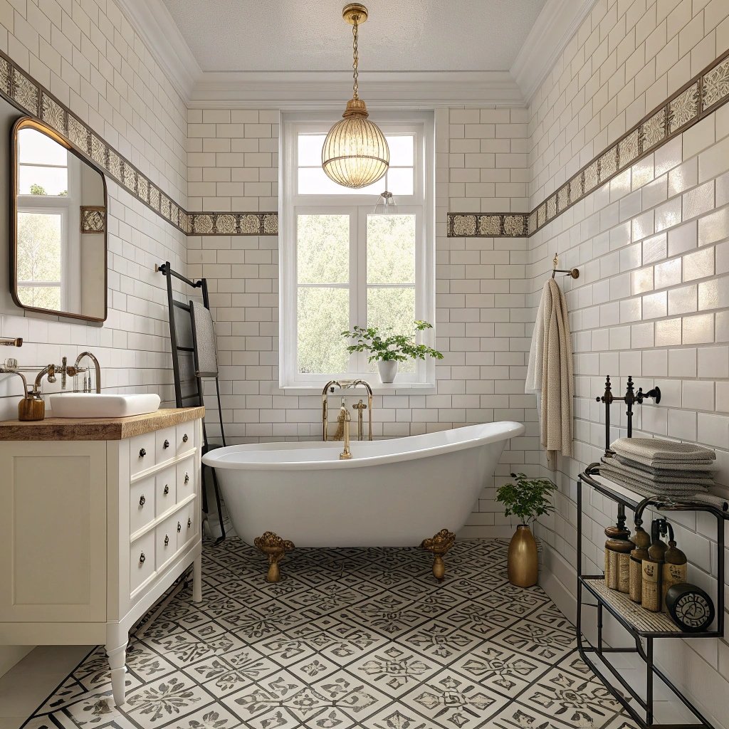 Use patterned floor tile in a muted palette for subtle interest. Your bathroom decor lands in a sweet spot—timeless, photogenic, and easy to live with.