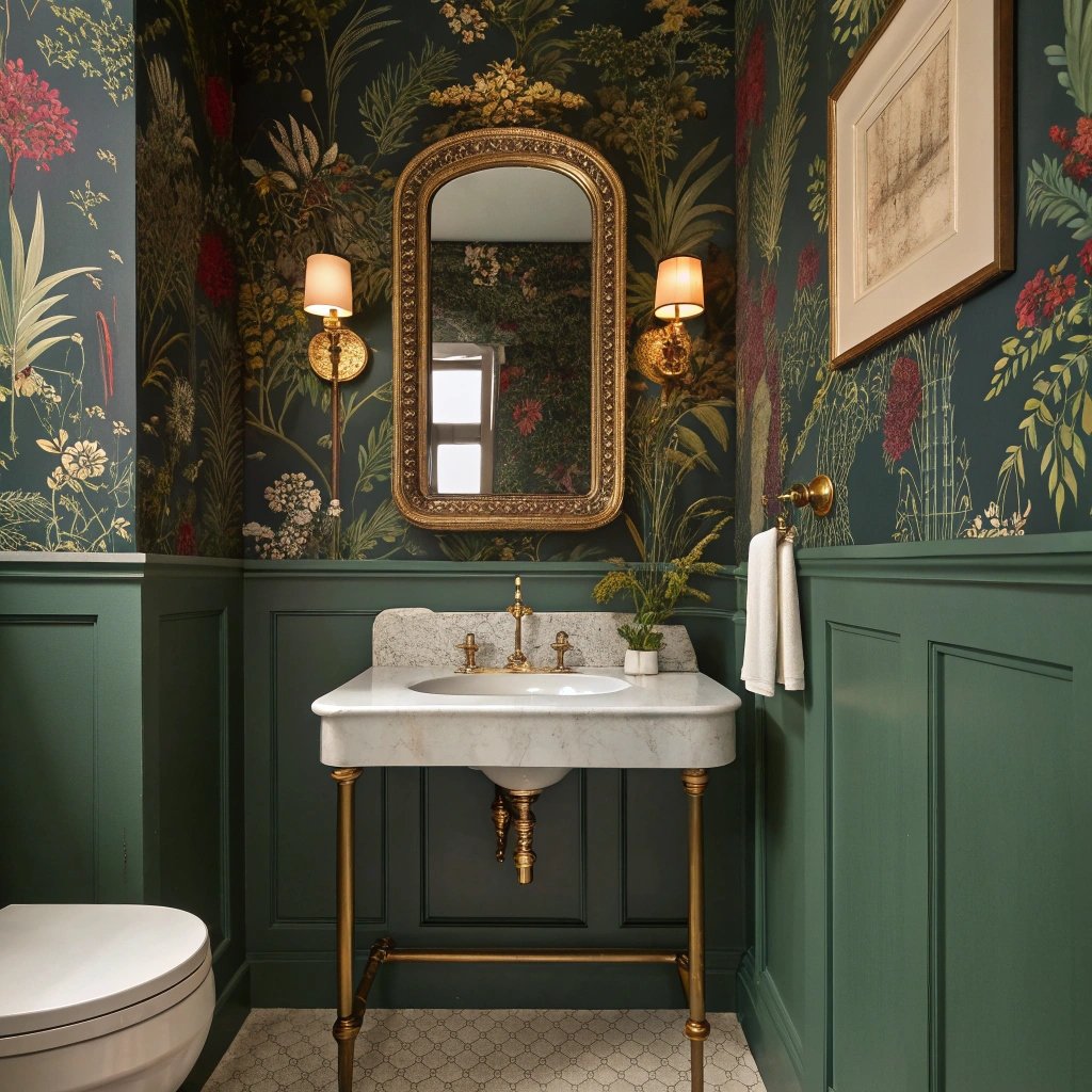 Small room, big personality. Go fearless with patterned wallpaper, high-gloss wainscot, or a saturated paint wrap.