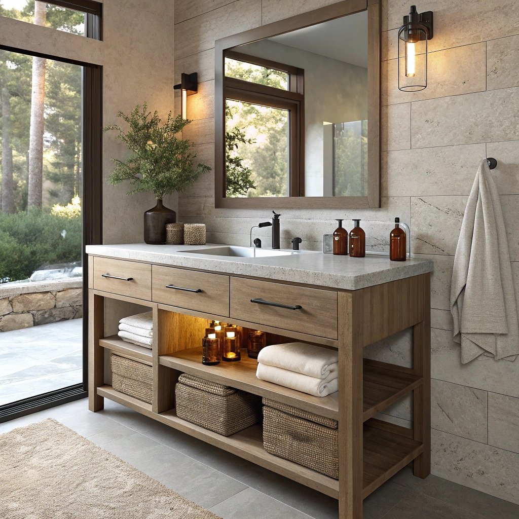 Add motion-activated lights inside cabinets and a hidden outlet in a drawer for hair tools. Storage becomes part of the architecture, not an afterthought.