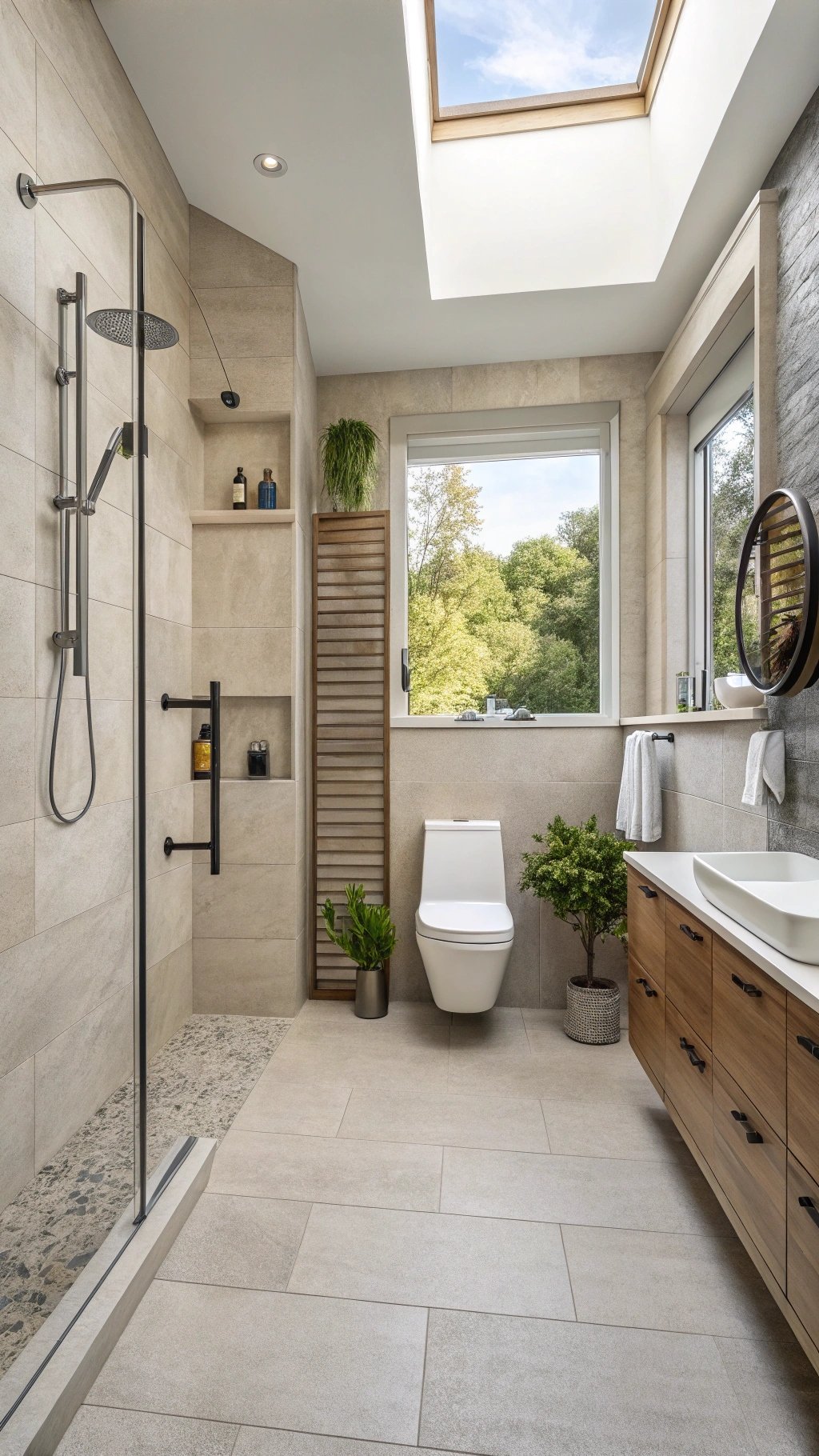 A curbless shower removes trip points and makes small rooms feel larger. Run the same tile across the floor into the shower and pitch it gently to a wall-edge linear drain.