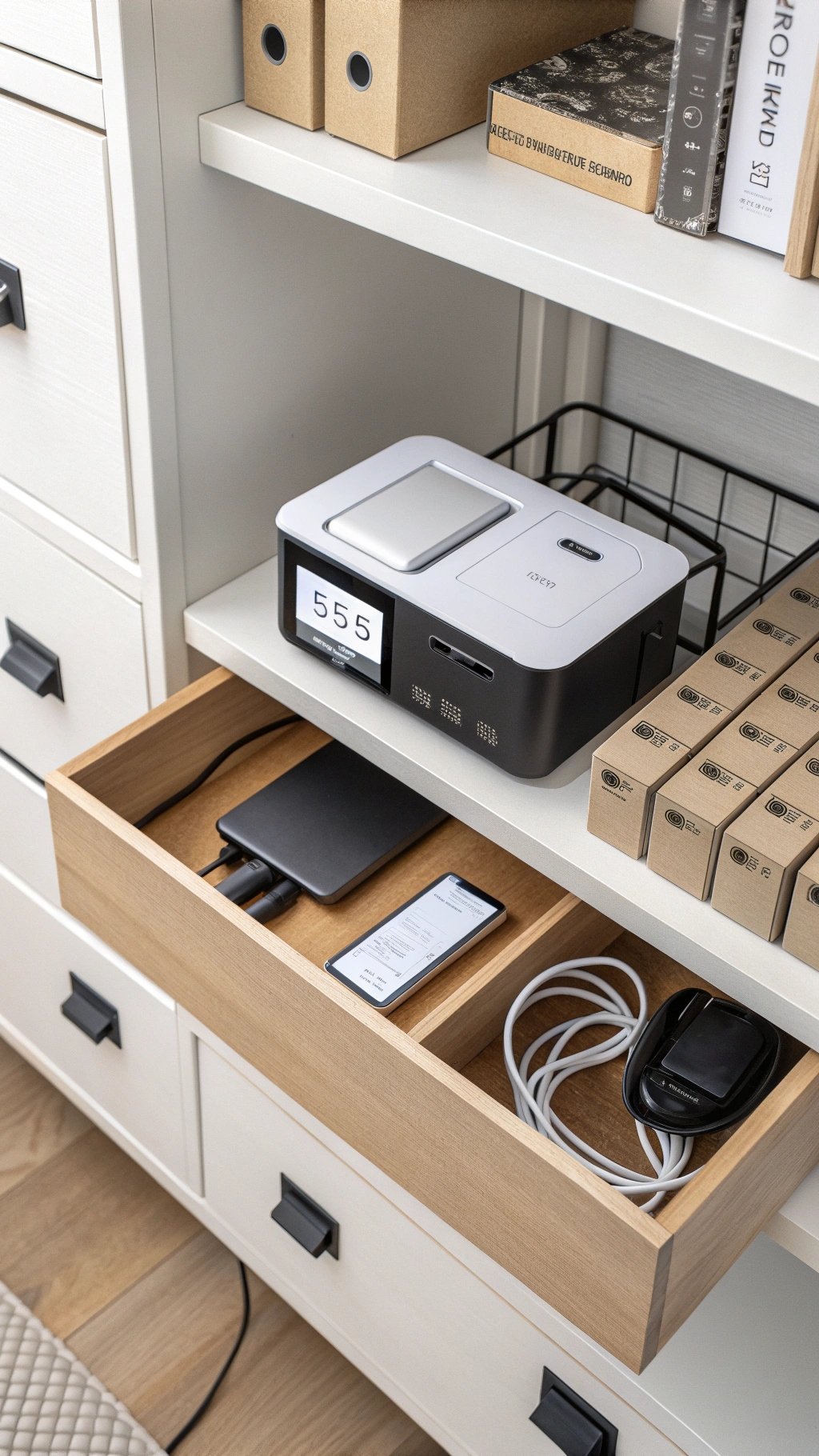 Hide a small charging hub in a drawer with cord pass-throughs so wearables and trackers stay powered. The system is invisible day-to-day, but you’ll never wonder which box holds the silk scarf again.