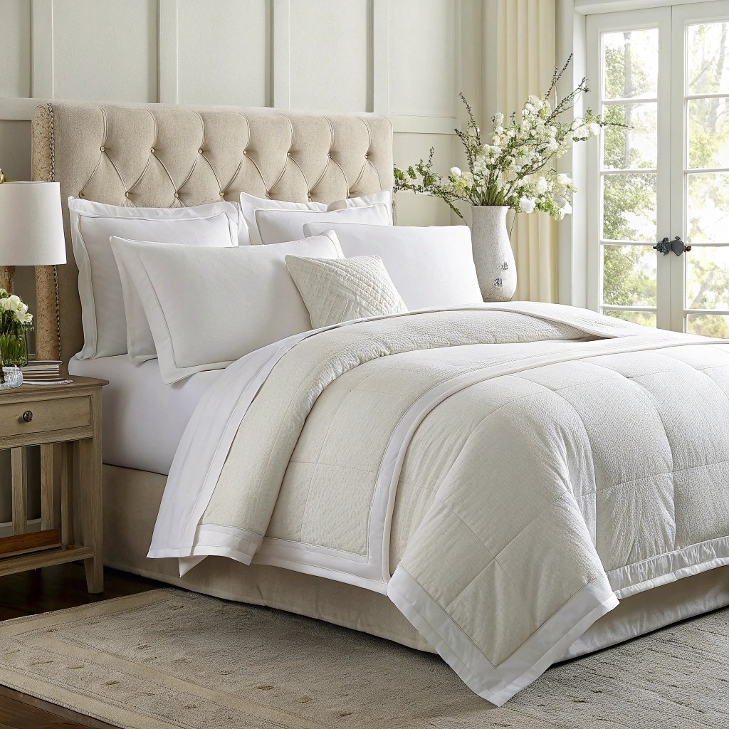 Mix a crisp sheet feel with a velvety quilt for temperature control year-round. The result is comfort that photographs beautifully and feels even better when you sink in.