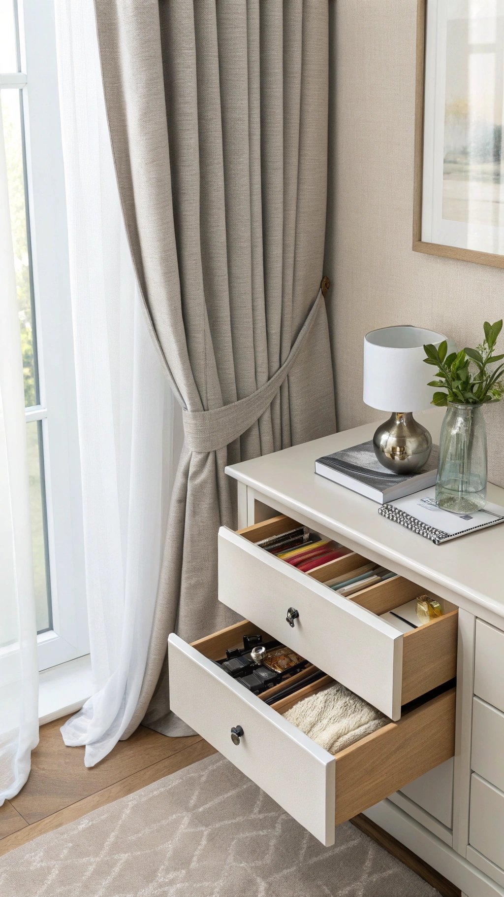 Use interchangeable tie-backs or magnetic catches matching each fabric’s vibe. The ritual makes the room feel fresh twice a year and extends fabric life through rest.
