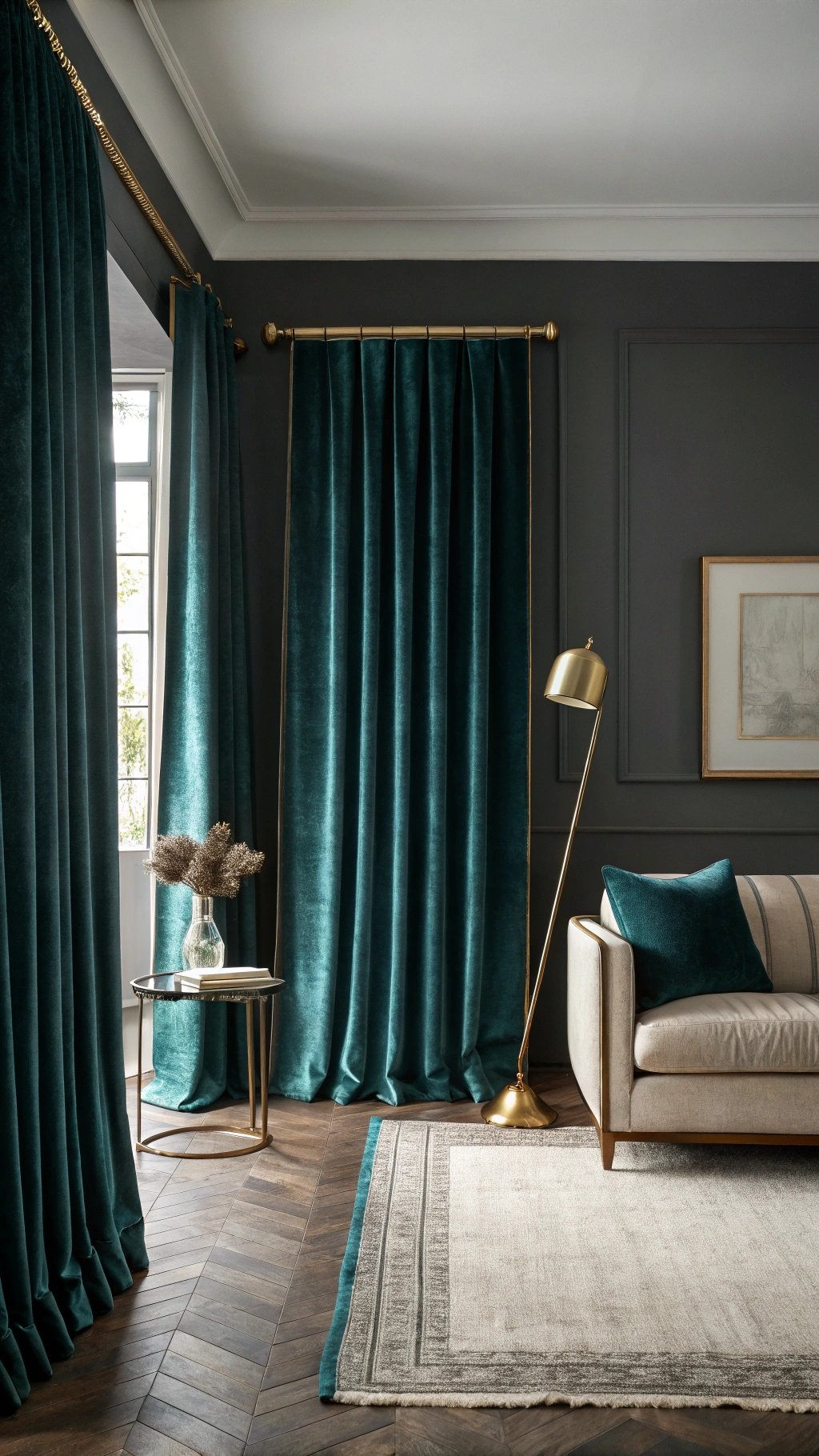 Velvet curtains absorb sound and light, perfect for echo-prone rooms or media setups. The pile reflects a soft sheen that looks rich under evening light.