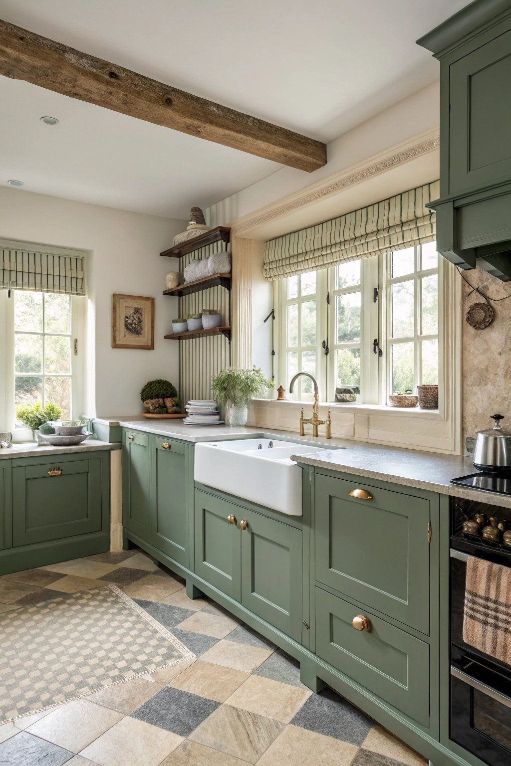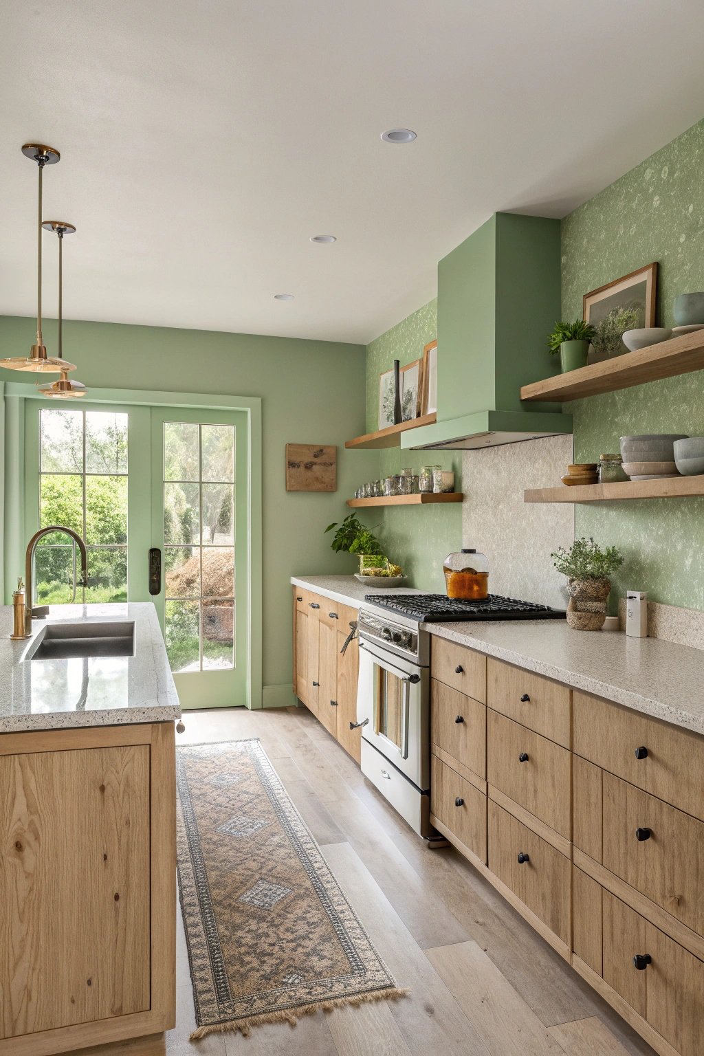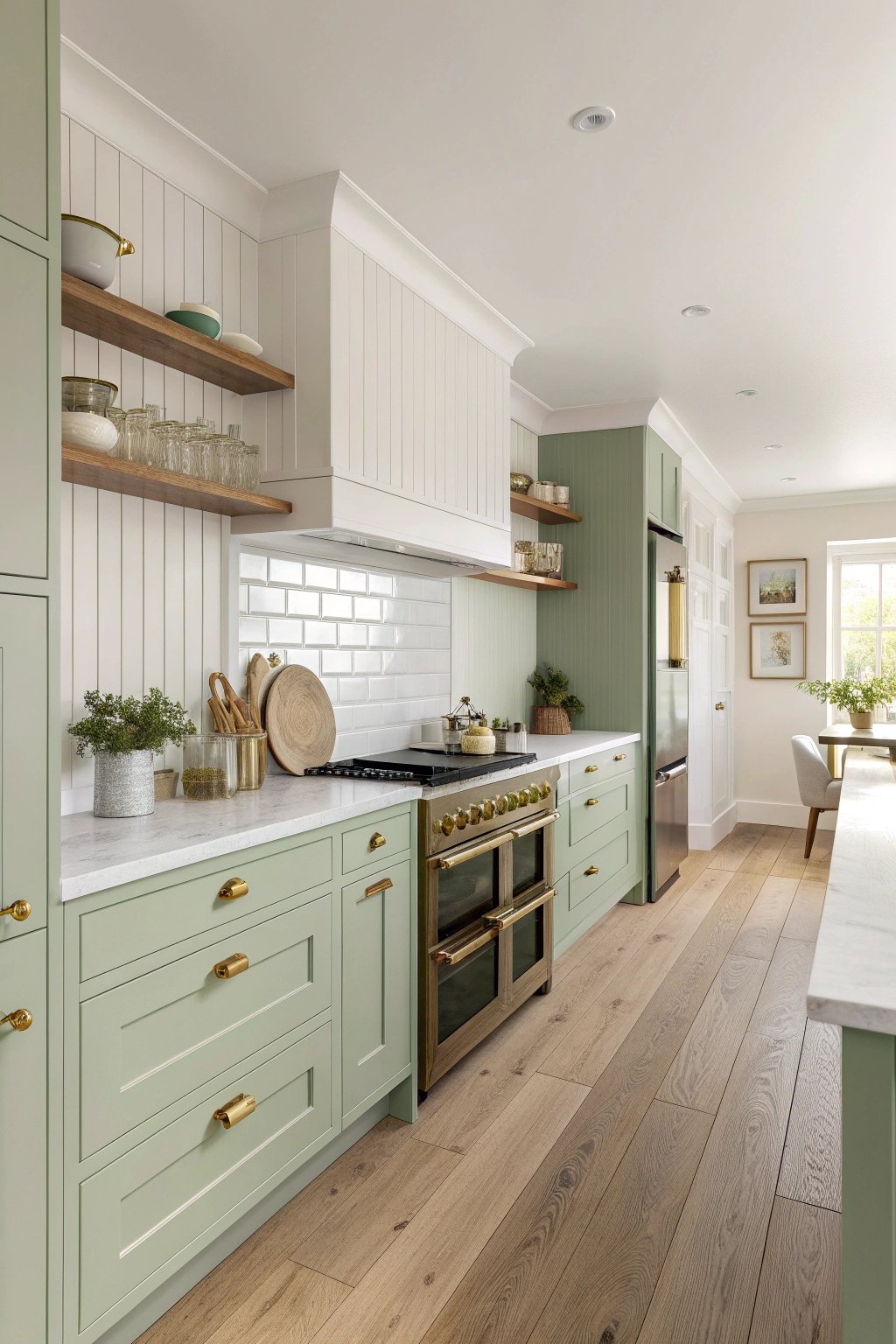 Sage is endlessly versatile: it shifts with daylight, appearing warm at sunrise and cool at noon, which makes the kitchen feel dynamic throughout the day.