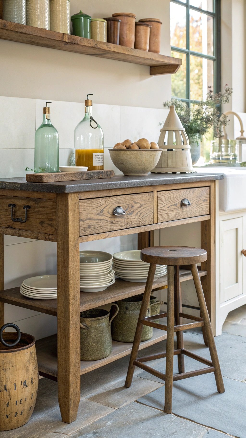 Swap shelf vignettes seasonally—citrus in winter, herbs in summer—without buying more storage. The zone reads curated and personal while staying easy to clean and reset.