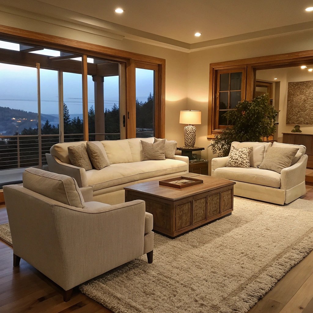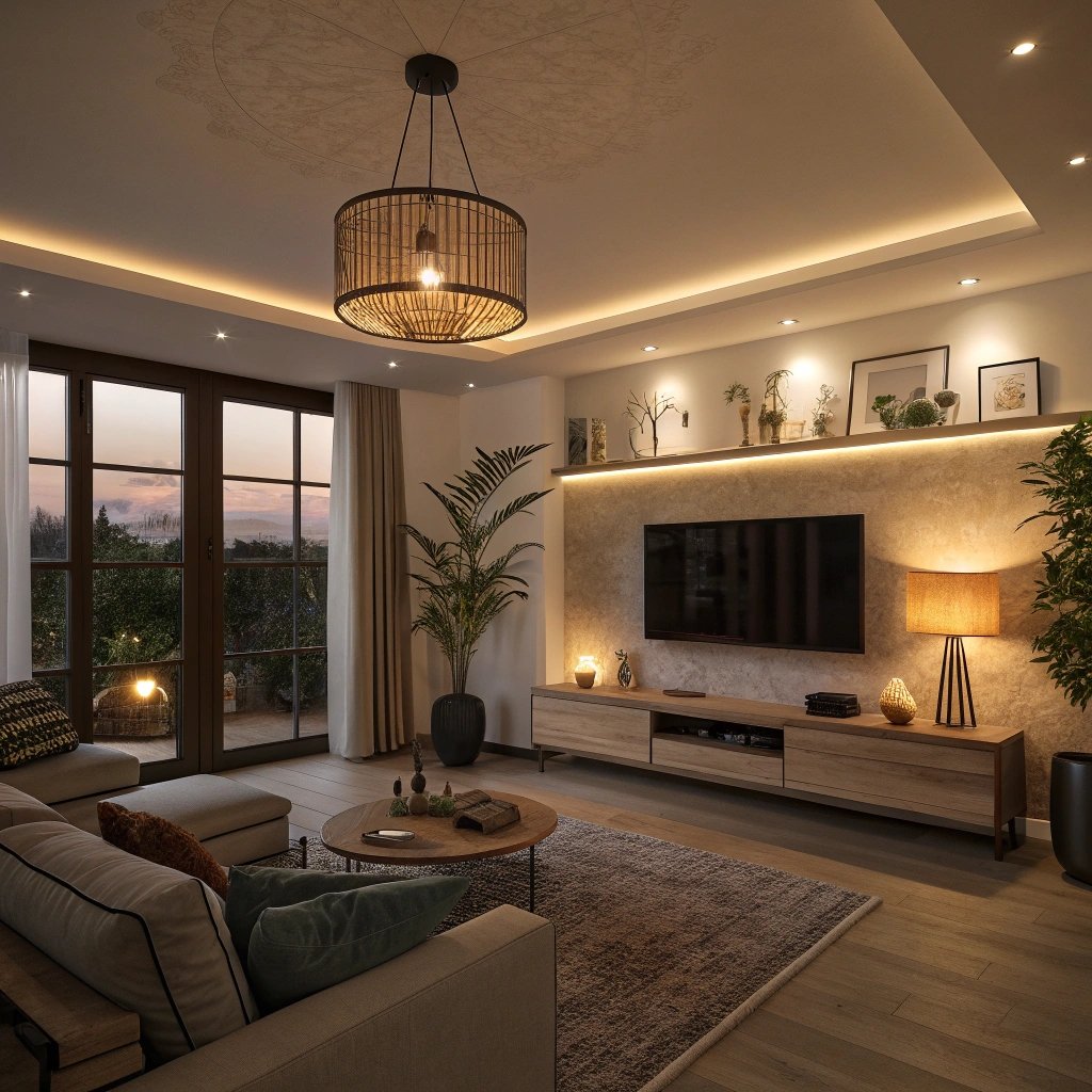 Warm 2700–3000K temperatures flatter skin and textiles. Put scenes on dimmers—Gather, Movie, Wind Down—so the room shifts with you.