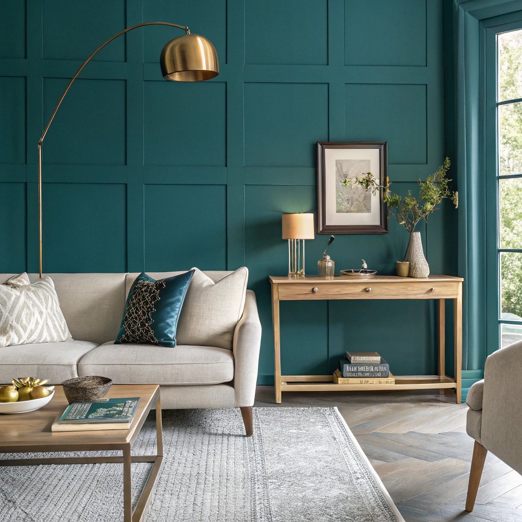 A single color-drenched wall can reset proportions and deliver personality. Choose deep teal, oxblood, or heritage green behind the sofa to frame seating and reduce the need for heavy art.