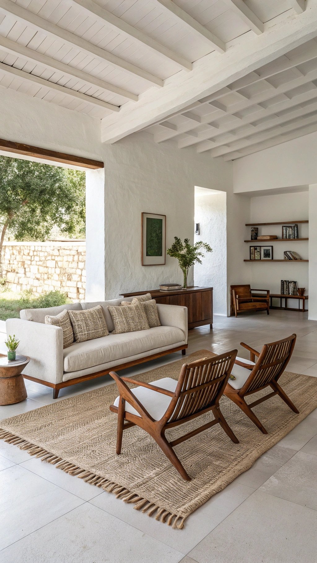 If you crave prints, limit them. One bold curtain, a pair of patterned cushions, or a small kilim is enough. The goal is rhythm, not noise, letting wood grain and silhouettes stay hero.