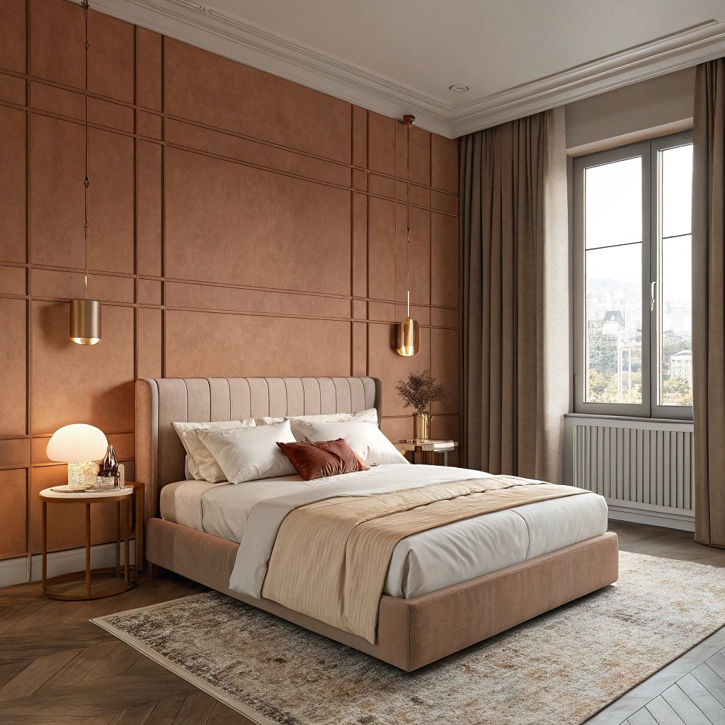 Choose one sophisticated hue—mushroom, olive gray, or muted clay—and wrap walls, trim, and even the headboard. Keep bedding in lighter tints of the same color family for low-contrast calm.