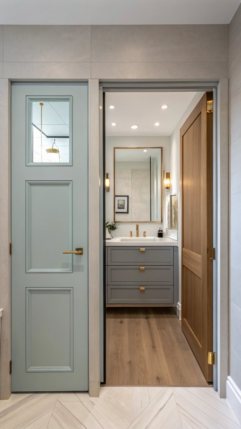 Choose soft-close hardware and a solid-core slab to control sound. Align the pull finish with taps and shower trim for a tight, designer palette that feels intentional.
