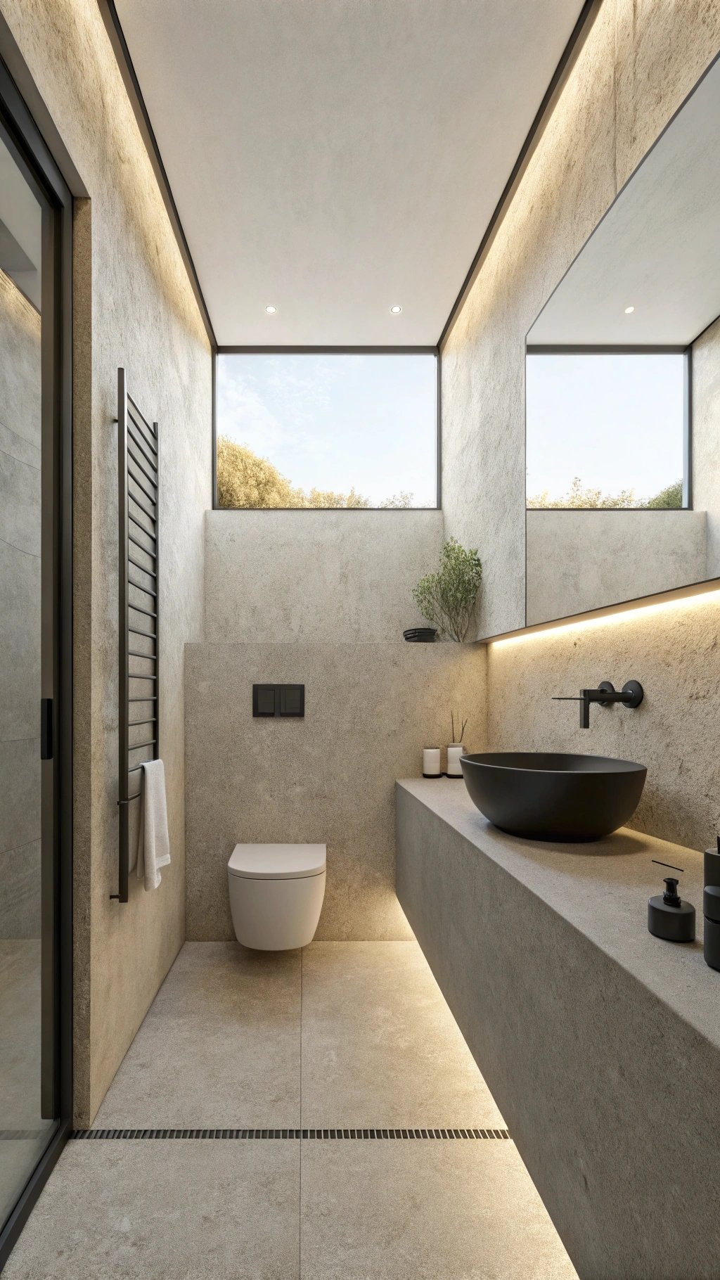 When square footage is tight, storage must disappear into the architecture. Carve niches at shower, face, and WC zones and cap a long, shallow ledge in stone to corral daily items.