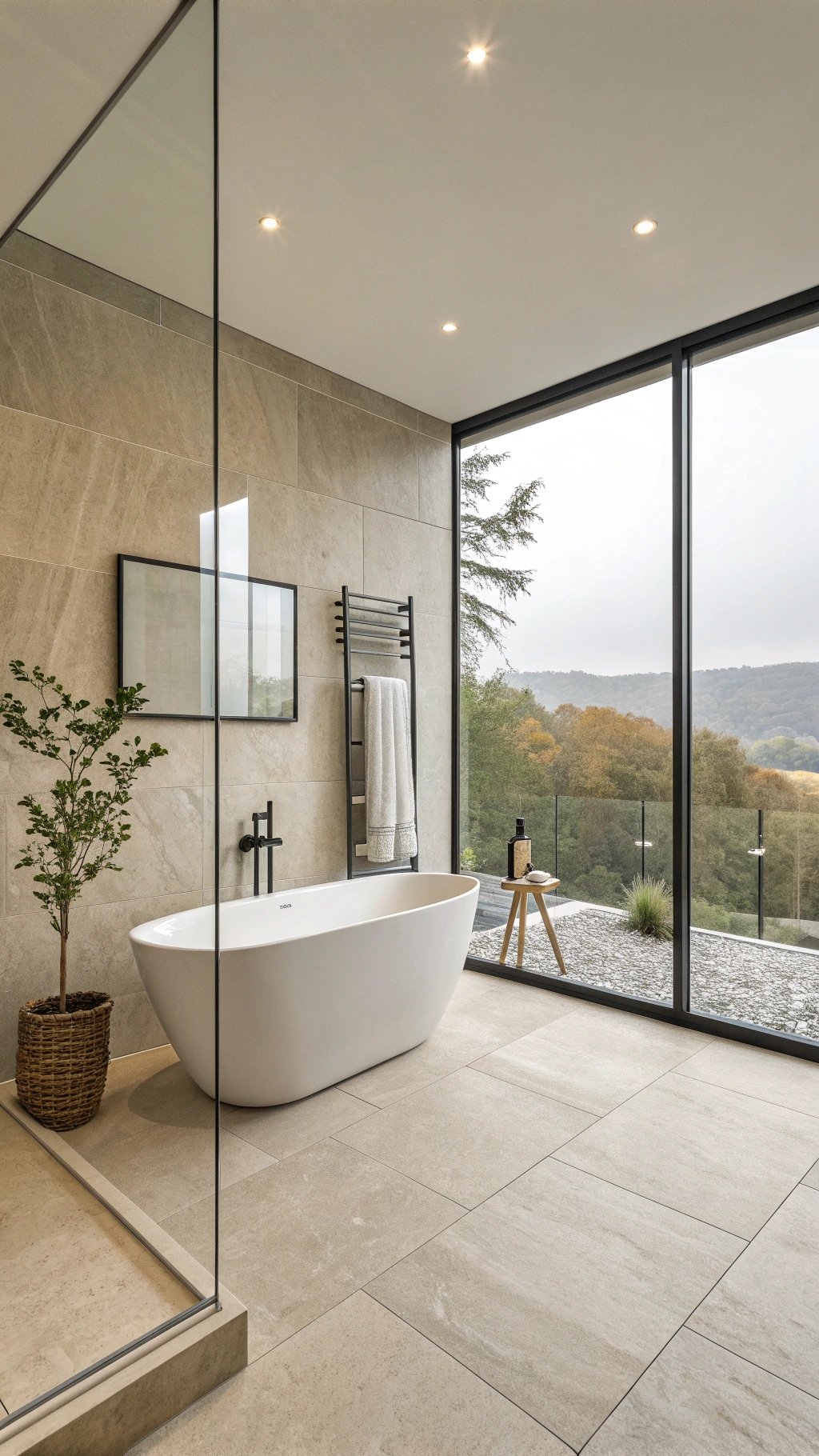 Add a micro towel niche within arm’s reach of the shower exit to eliminate drips across the floor while preserving the clean, gallery-like silhouette.