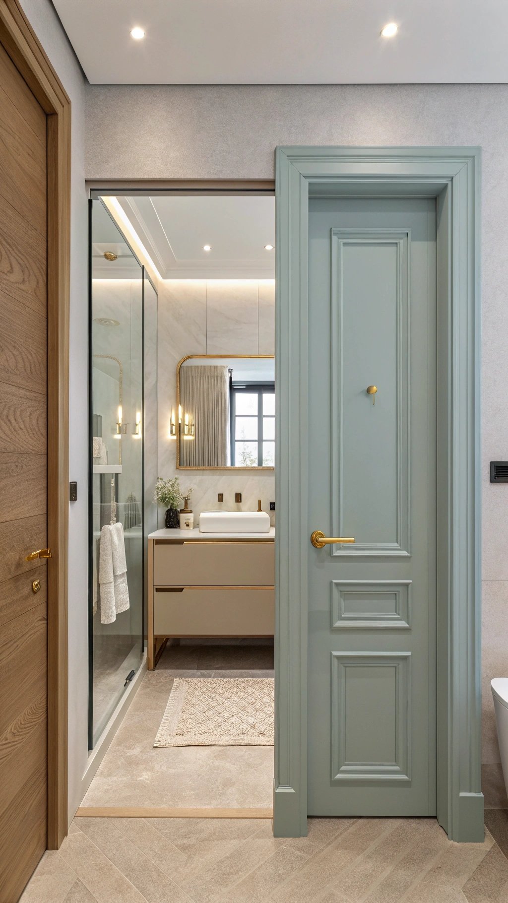 Swing doors eat precious floor area. A pocket or barn-style slider clears the circulation zone and gives you room for a longer vanity or wider shower.