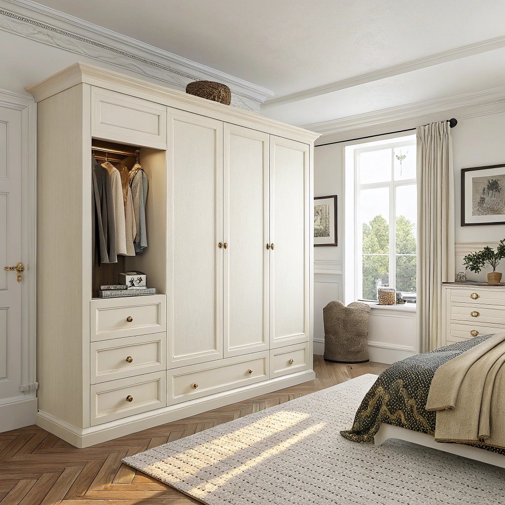 Elevate with bespoke details: inset beading, painted finishes in soft off-whites or heritage blues, and elegant knobs or unlacquered brass pulls. Add crown moulding to tie into baseboards and window trims for a built-in look. A lined jewelry drawer and felted watch trays inside make daily use feel special.