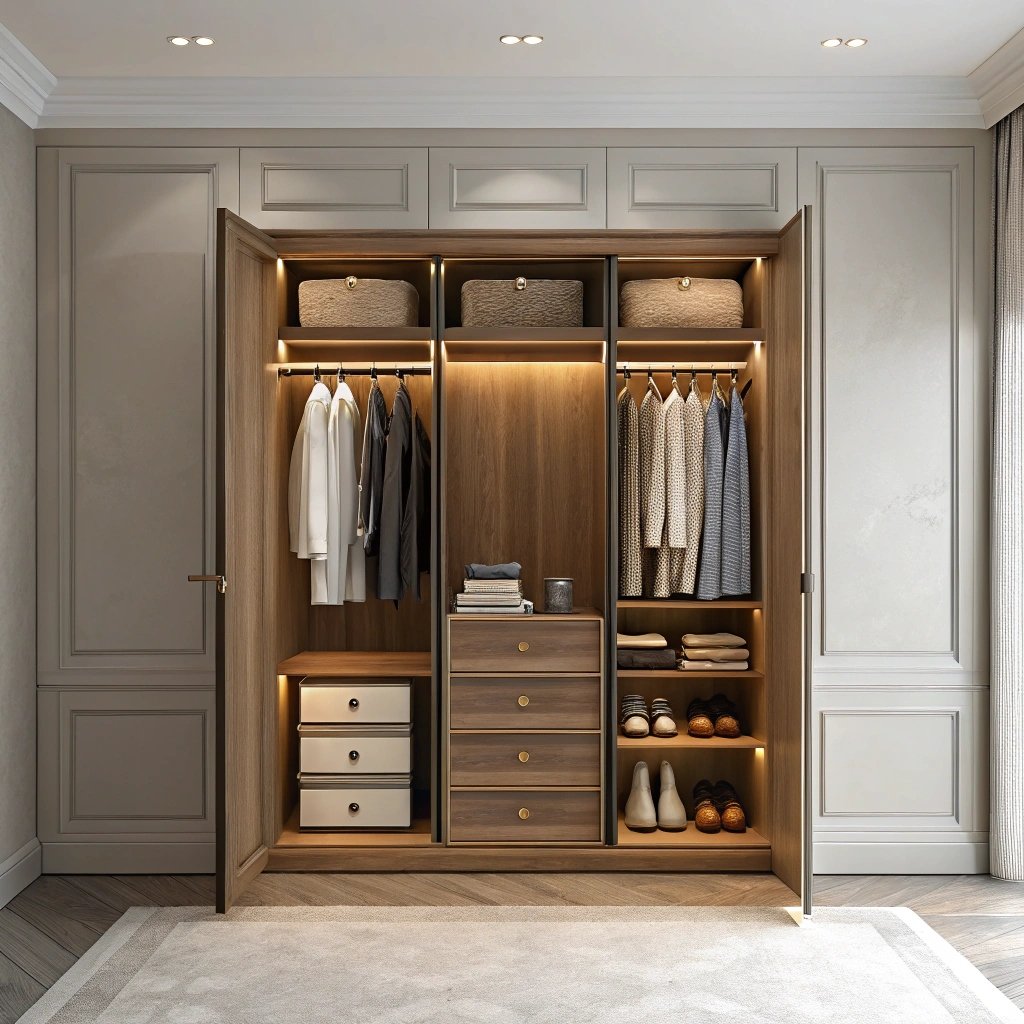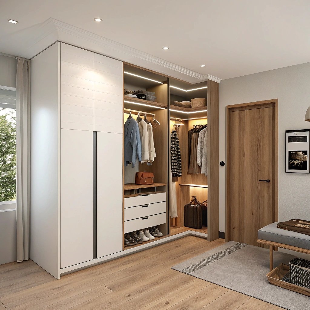 Divide a large wardrobe into zones based on user or category—workwear, casual, occasion, and accessories. In a “wardrobe design bedroom,” clear zoning reduces decision fatigue and speeds up routines. Each side can get personalized heights, drawer depths, and lighting tones.