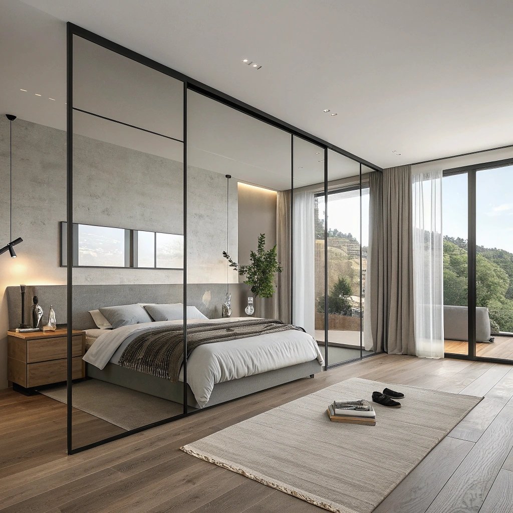 The special twist is using low-iron, anti-fog, or bronzed mirror to tune the reflection and mood. Frame the panels in slim black aluminum for a gallery vibe or warm brushed champagne for softness.