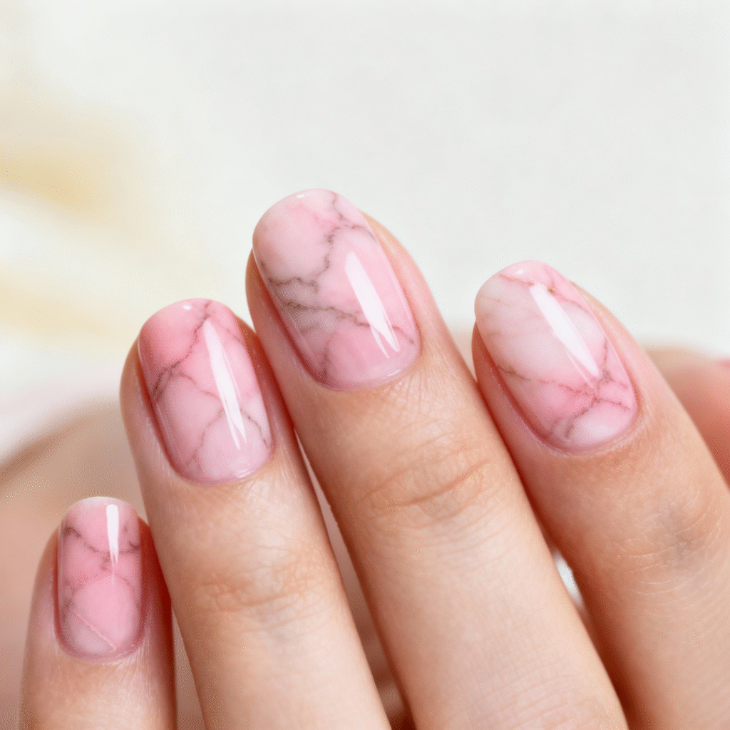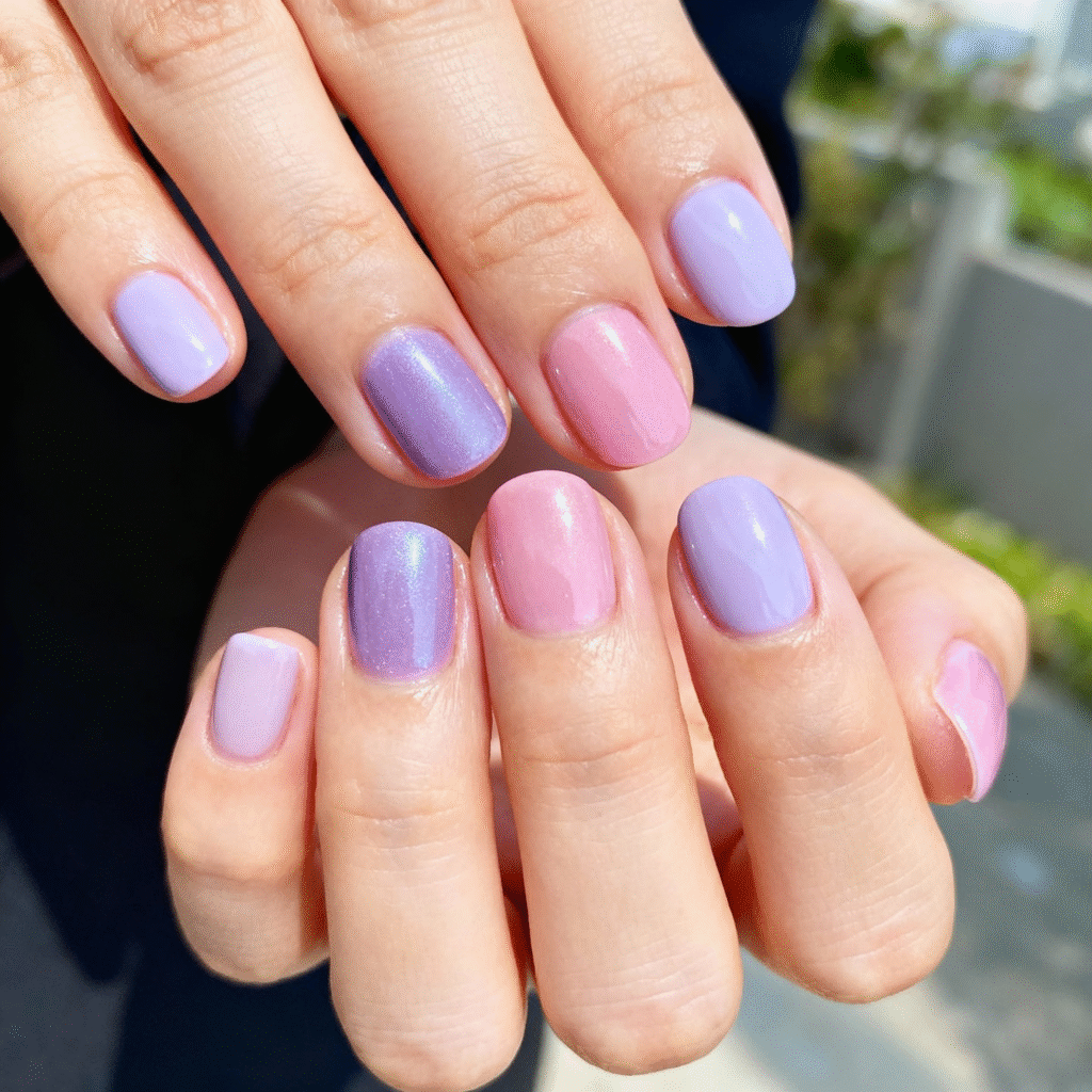 - Finish with a high-shine top coat to enhance the soft pastel glow.