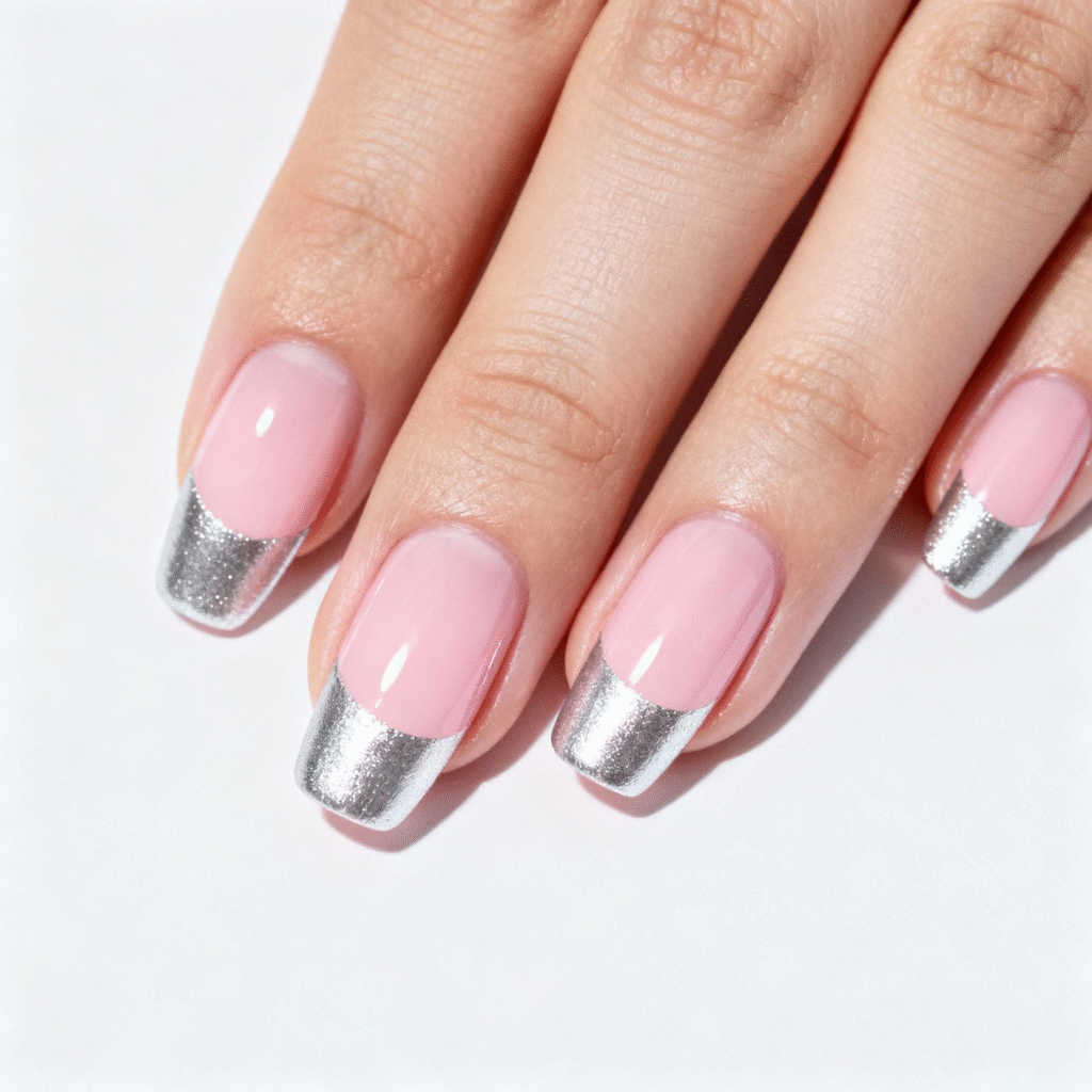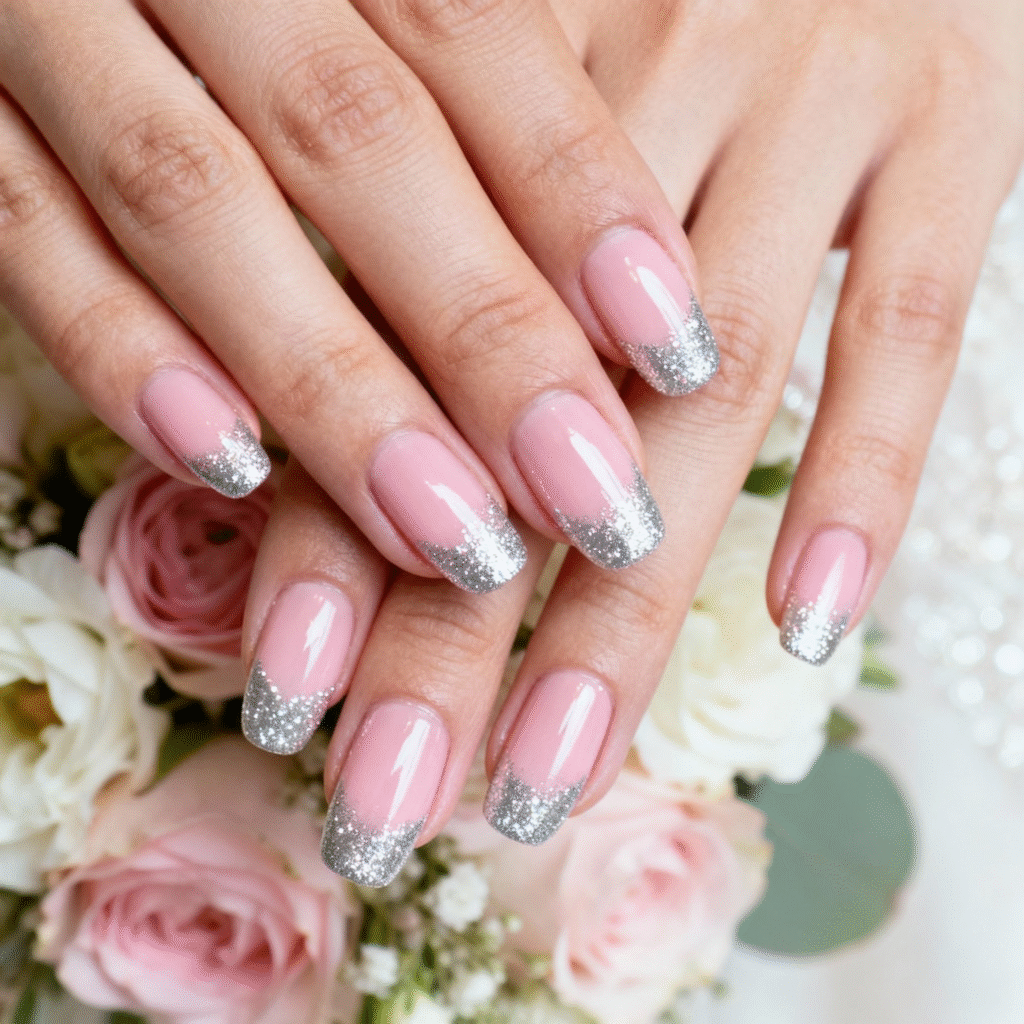 The silver foil adds sparkle precisely where it’s needed—the tips. It elevates the pink tone beautifully, balancing softness with brilliance for a picture-perfect bridal finish.